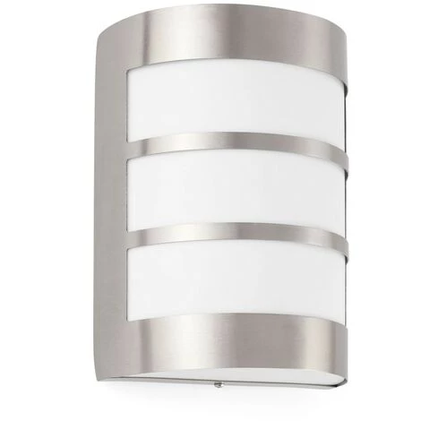 Applique pour extérieur inoxidable satiné, modèle CELA de FARO. Cet applique est compatible avec une source lumineuse E27 non inclus. Fabriqué en acier INOXIDABLE 304 et fini en inoxidable satiné. Ce luminaire a un indice de protection IP54 et un isolement de classe lI