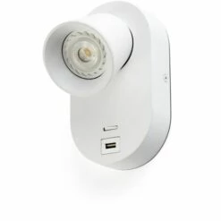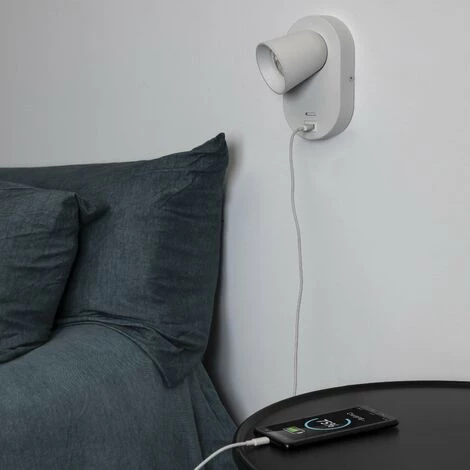 CORB est une applique conçue pour éclairer les chambres à coucher et les espaces contract. Cette applique blanche en acier peut être orientée. A un port USB.