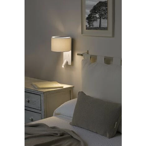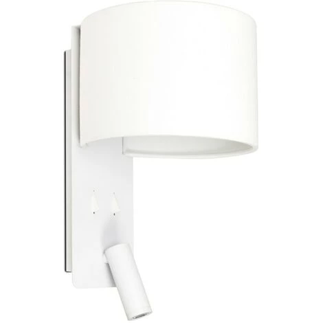 Applique avec lecteur blanc mat, modèle FOLD de FARO. Cette lampe est compatible avec une source lumineuse E27 non inclus. Fabriqué en acier et fini en blanc mat. Ce luminaire a un indice de protection IP20 et un isolement de classe I