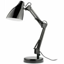 Lampe de bureau noir mat, modèle GRU de FARO. Cette lampe est compatible avec une source lumineuse E27 non inclus. Fabriqué en acier et fini en noir mat. Ce luminaire a un indice de protection IP20 et un isolement de classe II.