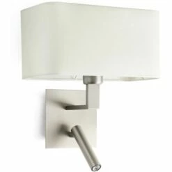 Applique nickel satiné, modèle HANNA de FARO. Cet applique est compatible avec une source lumineuse E27 non inclus. Fabriqué en acier et fini en nickel satiné. Ce luminaire a un indice de protection IP20 et un isolement de classe l.