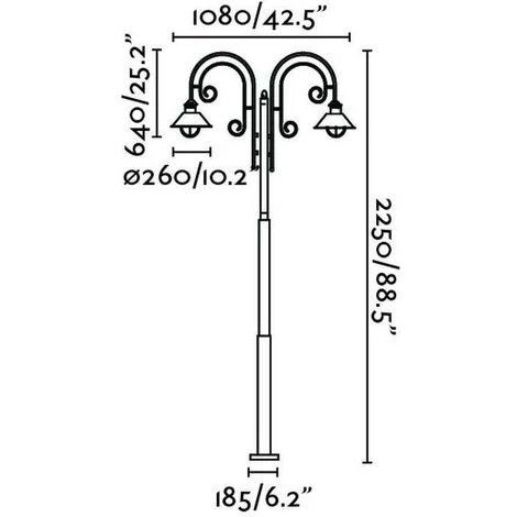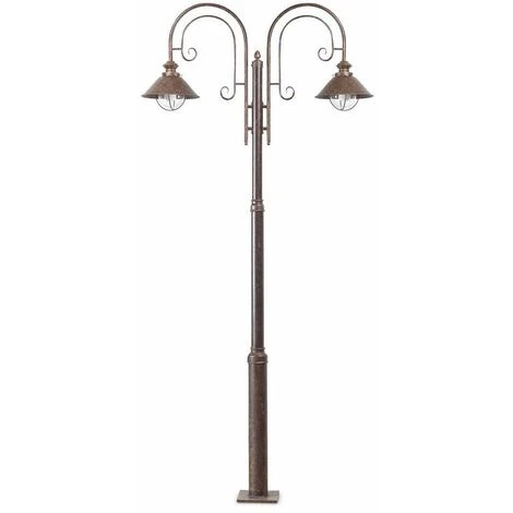 Lampadaire extérieur 2 lampes classique Faro nautica Marron Fer 71117. – Hauteur : 225 cm. – Longueur : 108,8 cm. – Puissance : 24 . – Culot : E27 . – IP : 33 . – Poids brut : 16,26 kg. – Voltage : 230 V. – Nombre d’ampoules : 2 .
