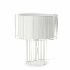 Lampe de table blanc mat, modèle LINDA de FARO. Cette lampe est compatible avec une source lumineuse E27 non inclus. Fabriqué en acier et fini en blanc mat. Ce luminaire a un indice de protection IP20 et un isolement de classe II