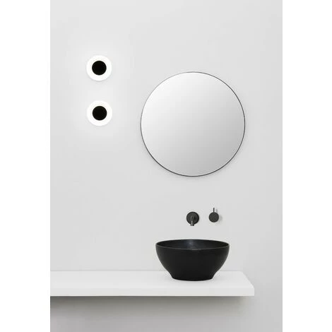 Applique/plafonnier noir, modèle MOY. Applique de salle de bain avec technologie LED conçue par Nahtrang. MOY est une lampe noire ronde de style moderne qui fournit une lumière uniforme et est également idéale pour les salons ou les zones à fort trafic. Il comprend la source lumineuse intégrée est une SMD LED 4W et une température de couleur chaude de 3000K.