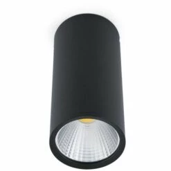 Plafonnier noir mat, modèle REL de FARO. La source lumineuse incluse est COB LED 25W 2700K 2230Lm. Fabriqué en aluminium et fini en noir mat. Ce luminaire a un indice de protection IP20 et un isolement de classe II