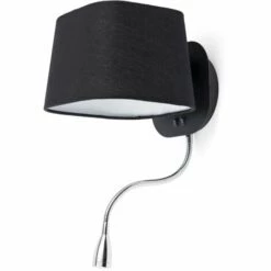Applique avec lecteur noir mat, modèle SWEET de FARO. Cette lampe est compatible avec une source lumineuse E27 non inclus. Fabriqué en acier et fini en noir mat. Ce luminaire a un indice de protection IP20 et un isolement de classe I