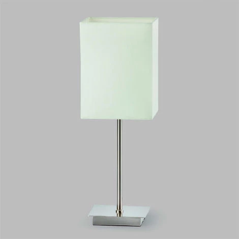 Lampe de table nickel satiné, modèle THANA de FARO. Cette lampe est compatible avec une source lumineuse E27 non inclus. Fabriqué en acier et fini en nickel satiné. Ce luminaire a un indice de protection IP20 et un isolement de classe II