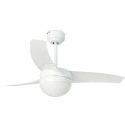 Ventilateur de plafond modèle EASY de la marque FARO avec lumière. Dispose d’un moteur AC avec une puissance maximale de 15W et 3 vitesses: 11-23-68 W / 105-185-285RPM. Actionné à l’aide d’une télécommande con temporizador. Le corps est en acier couleur blanc mat, dispose de 3 lames de ABS de couleur blanc mat et a un diamètre de 1050 mm. Le diffuseur est ABS. Ce ventilateur est compatible avec une source lumineuse E27, n’est pas inclu. Non compatible avec les tiges d’extension. Il convient à une installation sur un plafond en pente jusqu’à 30º. Ce ventilateur de plafond n’est pas adapté pour l’extérieur. Ce ventilateur dispos de la fonction inverse, vous pourrez donc l’utiliser en hiver pour améliorer l’efficacité de votre système de chauffage.