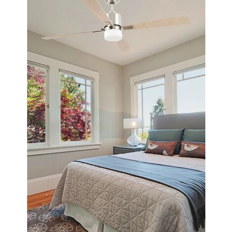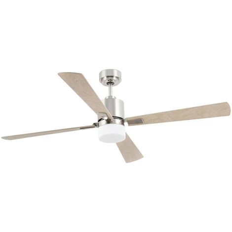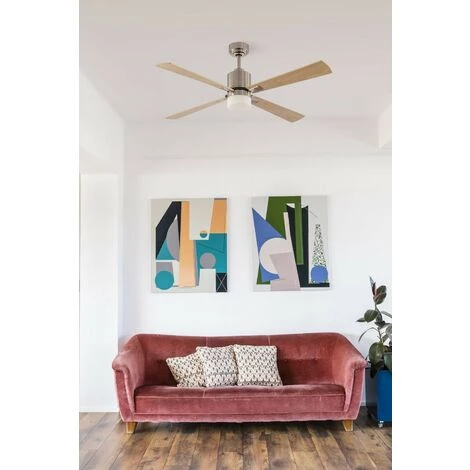 Ventilateur de plafond modèle PALK de la marque FARO avec lumière. Dispose d’un moteur DC avec une puissance maximale de 8W et 6 vitesses: 3-5-8-13-21-32 W / 50-77-104-131-158-185RPM. Actionné à l’aide d’une télécommande. Le corps est en acier couleur nickel satiné, dispose de 4 lames de pletwood de couleur arce et a un diamètre de 1320 mm. Le diffuseur est en verre. Ce ventilateur est compatible avec une source lumineuse E14, n’est pas inclu. Vous avez la possibilité de remplacer la tige pour une tige d’extension de taille différente. Il convient à une installation sur un plafond en pente jusqu’à 30º. Ce ventilateur de plafond n’est pas adapté pour l’extérieur. Ce ventilateur dispos de la fonction inverse, vous pourrez donc l’utiliser en hiver pour améliorer l’efficacité de votre système de chauffage.